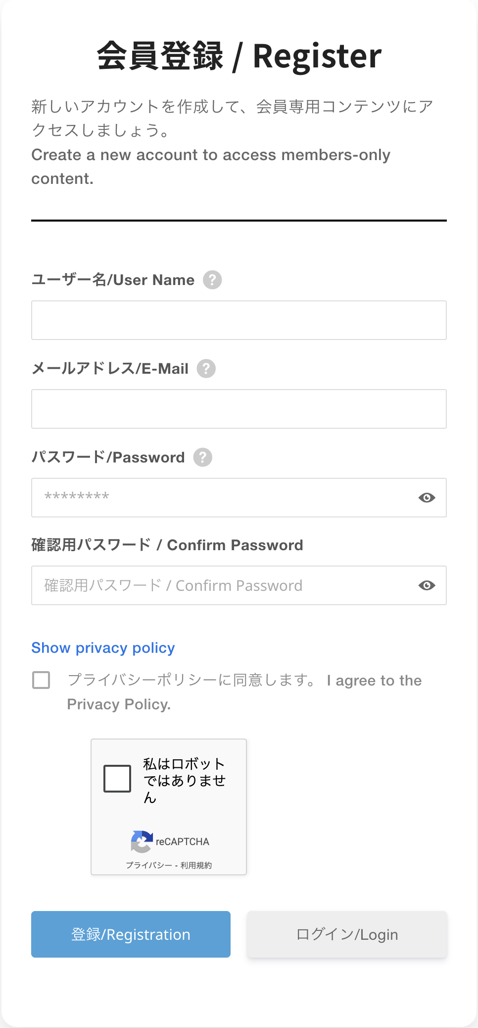 登録・ログイン時に認証を行い、不正アクセスを防止しています。